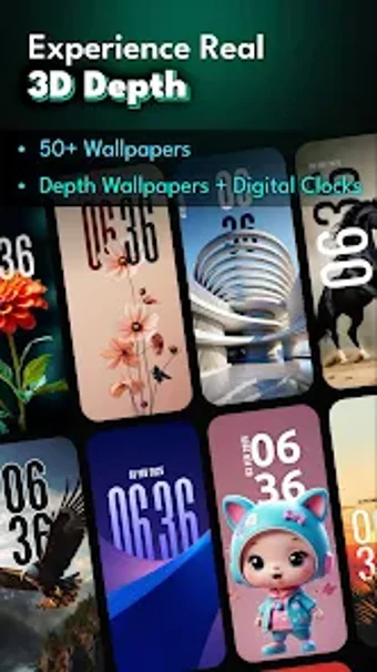 Depthify 3D Wallpaper Clock est une application gratuite pour Android qui permet de personnaliser votre écran d'accueil et votre écran de verrouillage avec des fonds d'écran 3D immersifs et une horloge en direct intégrée. Cette application vise à offrir un look frais à votre téléphone tout en garantissant que l'heure et la date restent clairement visibles. Les utilisateurs peuvent profiter d'une vaste bibliothèque de fonds d'écran et d'options de personnalisation pour s'adapter à leur style personnel.